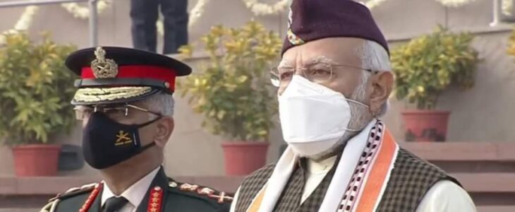 73 वें गणतंत्र दिवस के अवसर पर राष्ट्रीय राजधानी में आयोजित समारोह से प्रधानमंत्री मोदी की पोशाक काफी चर्चाओं में हैं। जनता को एक बार फिर पीएम का एक अलग अंदाज देखने को मिला। मोदी आज कुर्ता- पैजामा,गले मे असम की पहचान अंगवस्त्र और सिर पर ब्रह्मकमल का निशान लगी उत्तराखंडी टोपी पहन परेड में पहुंचे। समारोह में सर्वाधिक आकर्षण का केंद्र रही मोदी की टोपी जिस पर उत्तराखंड के राज्यपुष्प ब्रह्मकमल का निशान लगा हुआ था। उत्तराखंडियत को दर्शाती है