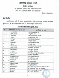 2022 के विधानसभा चुनाव के लिये जारी 59 सीटों के प्रत्याशियों की सूची।