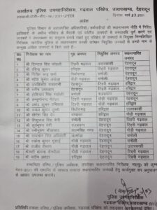 जिसके बाद से महकमे में उक्त तबादलों को लेकर काफी चर्चायें हो रही है। तबादला प्रक्रिया पर विभाग के ही अधिकारी सवाल उठा रहे है कि कार्यमुक्ति से एक महीना पहले तबादला सूची जारी करने को लेकर इतनी जल्दबाजी पहले कभी देखने को नही मिली है। उक्त तबादला सूची में सर्वाधिक 8 नाम देहरादून जिले से है जिन्हें देहरादून से बाहर भेजा गया है। एक साथ इतनी बड़ी संख्या में इंस्पेक्टर्स को जिले से बाहर तबादले कर देने से अधिकारी की नेतृत्व क्षमता भी कटघरे मे आ गयी है?