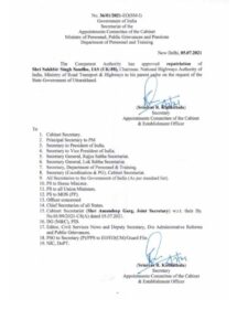 केंद्र सरकार के अधीन राष्ट्रीय राजमार्ग प्राधिकरण के मुखिया रहे आईएएस सुखबीर सिंह संधु को भारत सरकार ने उत्तराखंड हेतु रिलीव कर दिया गया है।